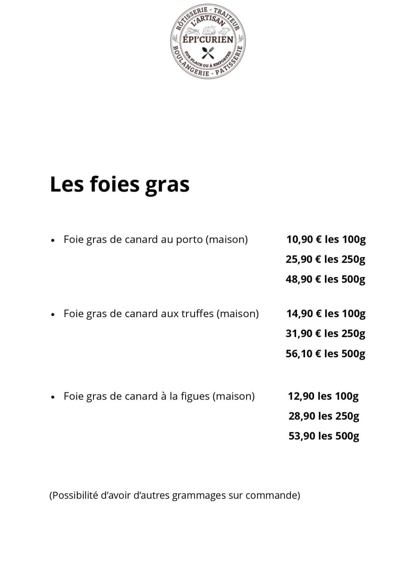 Nos Foies Gras de Canard Maison Préparés par nos soins, disponibles en 100g, 250g ou 500g.