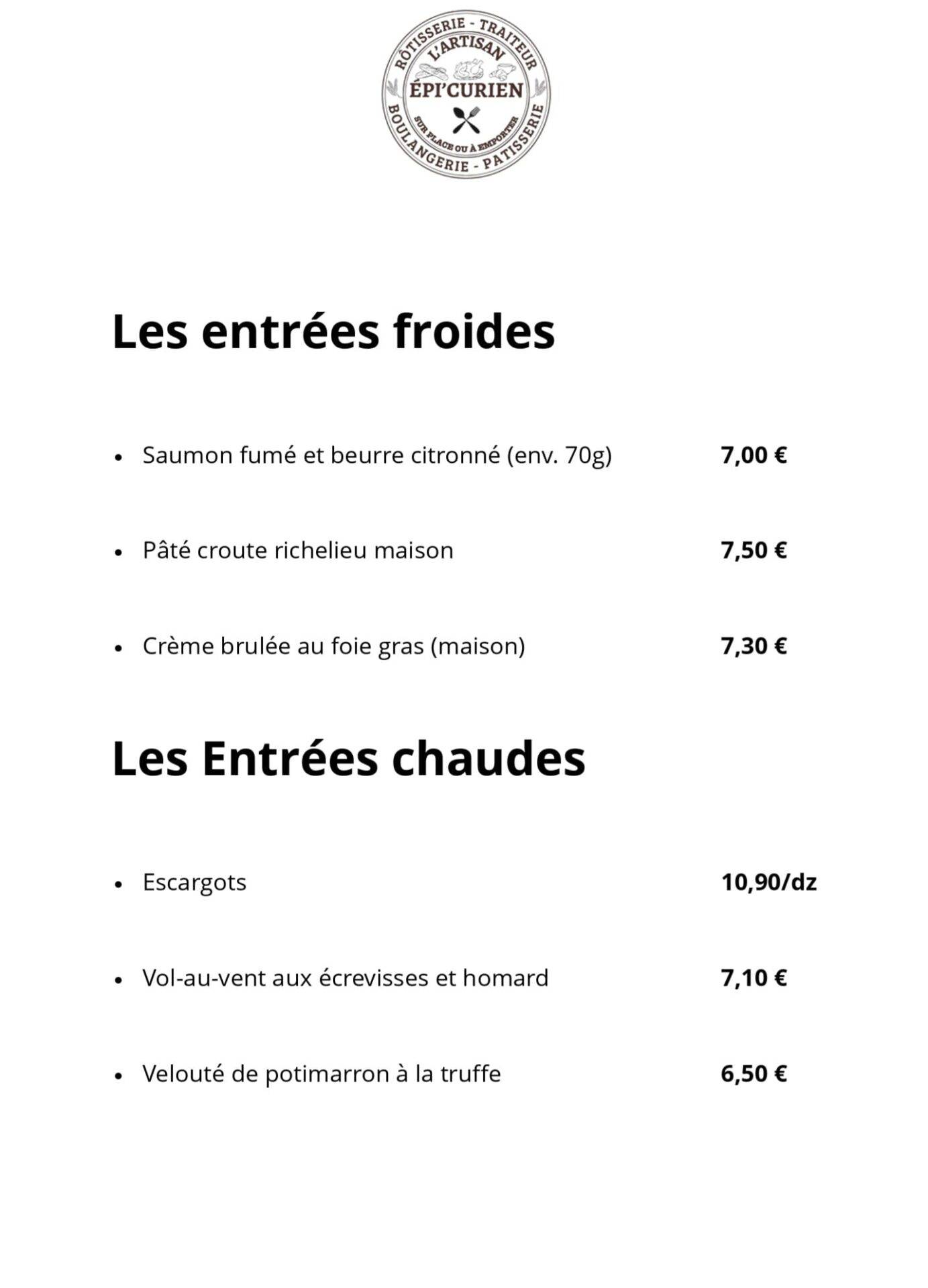 La Carte Traiteur : Entrées, Plats, Accompagnements et Desserts