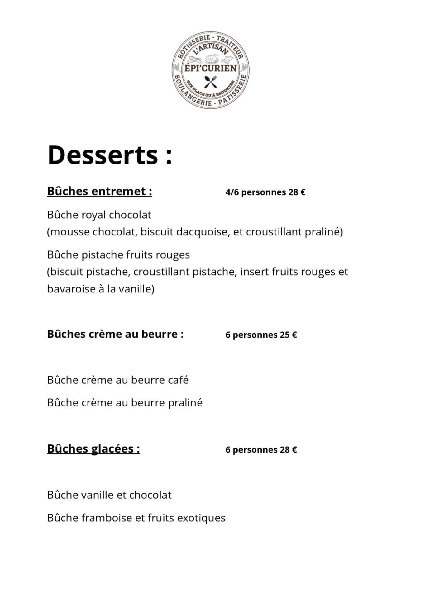 - Bûche de noël individuelle au choix entremet ou crème au beurre
